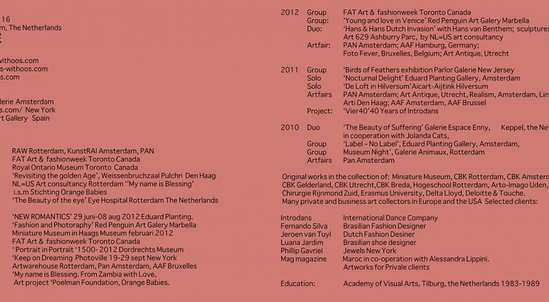 • Book: New Romantics – Photography and Book design: Hans Withoos -Hair & Make-up: Jolanda Cats -Styling: Al Benmira